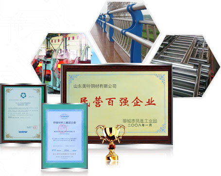 山東美特鋼材有限公司(15863566668)是常年專業從事生產、銷售內外襯不銹鋼復合管,不銹鋼復合管護欄的廠家,公司擁有完整的不銹鋼及不銹鋼復合管生產線24條,以及各類金屬加工設備多套(數控等離子切割機、沖床、冼床等),公司還擁有獨立的鍍鋅和噴塑車間,良好地處理好鋼板表面效果。 公司優勢:一、專業性強1.專業設計、制作和安裝不銹鋼復合管工程及金屬欄桿工程。集設計、生產、銷售與安裝為一體的完整體系。2.專業應于:橋梁欄桿、市政建設、景觀護欄、體育器材、車輛機構、紡織機械、醫療設備等二、質量過硬1.通過IS09001:2000質量體系認證2. 獲得“全國質量、服務、信譽AAAA及”企業稱號,“中國綠色環保建材產品”,“中國優質建材產品”…